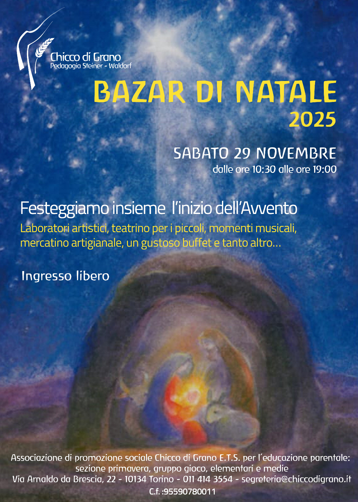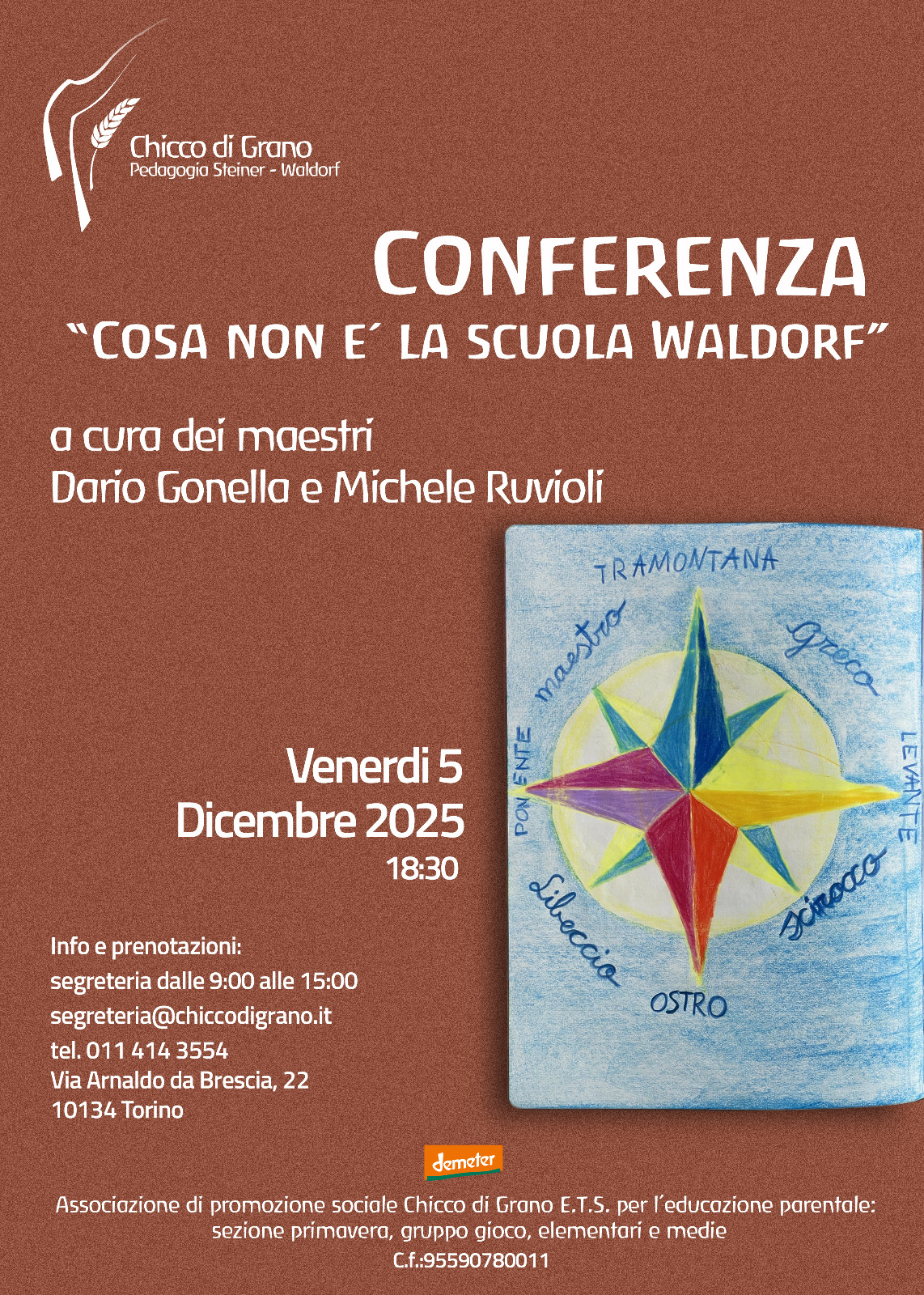 In questa sezione verranno pubblicati gli eventi promossi da Chicco di Grano e quelli di interesse antroposofico che si svolgono a Torino e dintorni, come le iniziative del Centro per l’Antroposofia e di altre realtà affini.